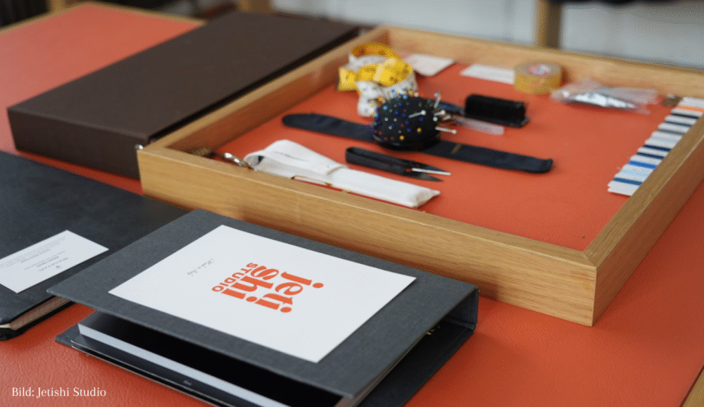 Jetishi hat sich bewusst gegen den klassisch, prunkvollen Luxus entschieden. Kein Standort in der Goethestraße, keine spiegelnden Flächen, keine Markensymbole im Dauereinsatz. Stattdessen erwarten dort einen warme Farben, Kunst an den Wänden, ein reduzierter Raum, der keine Hemmschwellen aufbaut, sondern Maßanfertigungen zugänglich macht. Auch sein Branding folgte diesem Gedanken. Es ging ihm darum, die Marke ruhiger wirken zu lassen und nicht zu sehr in den Vordergrund zu rücken. Statt Markenpräsenz zu inszenieren, schafft Jetishi ein Gefühl von Raum und nicht von Bühne. Ein Ort, an dem man sich auf das Wesentliche, den Kunden, das Produkt und den Prozess, konzentrieren kann, ohne ständig an einen Markennamen erinnert zu werden.