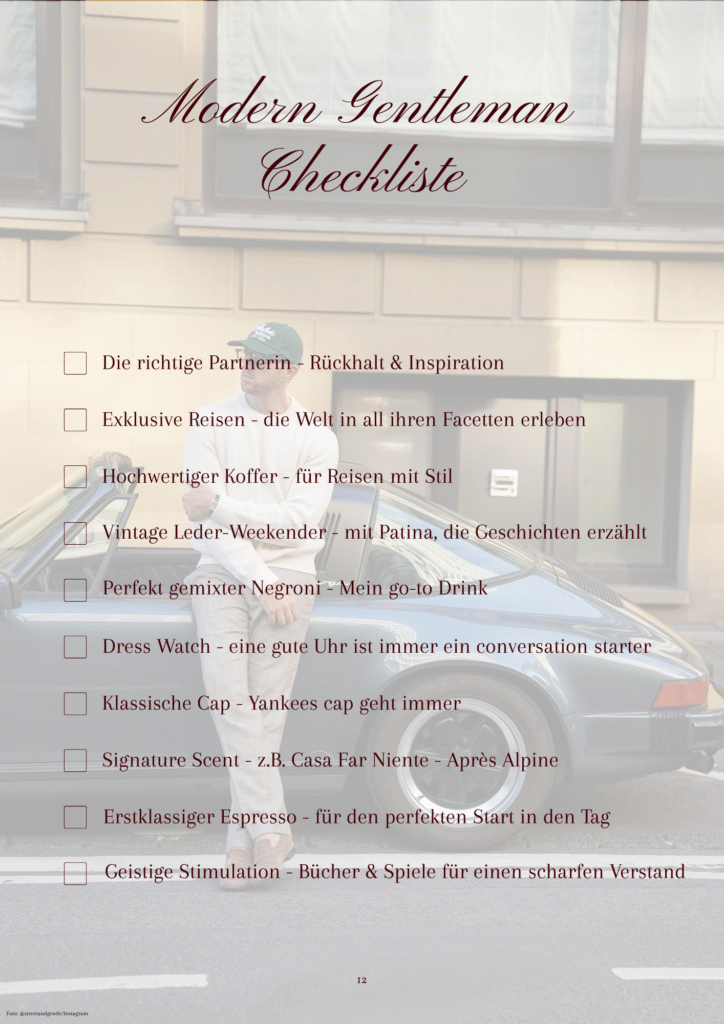 GC: Du hast im Verlauf unseres Gesprächs eine „Modern Gentleman Checkliste“ erwähnt. Magst du die teilen?